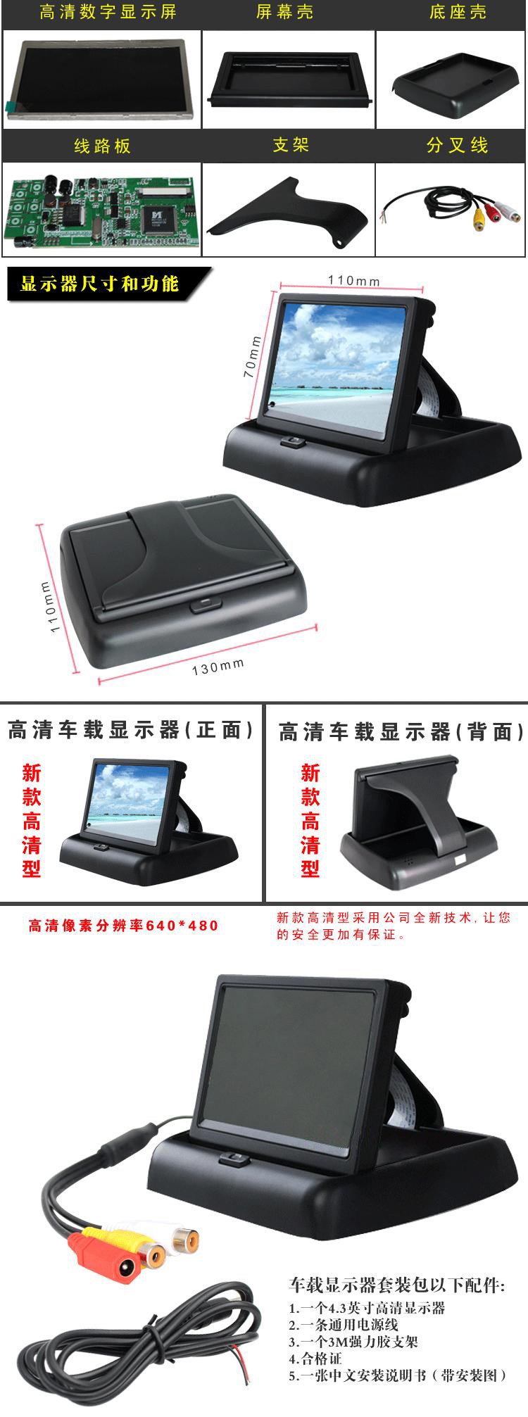 高清晰度,超薄设计,小巧方便,不占用车上空间,方便您的使用,3M强力胶支架,安装固定方便,真正超高分辨率 全屏显示,画面清晰!